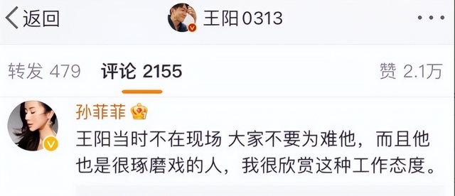 当时孙菲菲在评论区帮他解围,还透露王阳不在现场。
