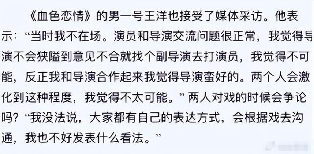 2010年事件发生后,王阳接受采访时曾称“导演不会因意见不合打演员”。