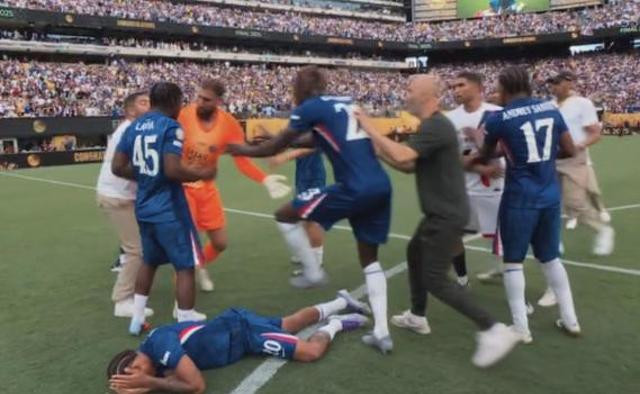 主教练恩里克尤其失控,他跟切尔西一个新签的小将佩德罗不知道为啥发生了口角。
