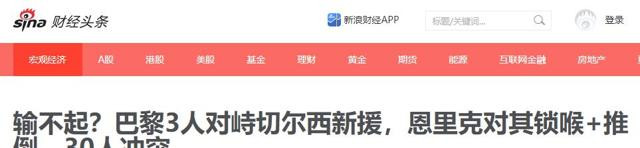 新浪财经——输不起?巴黎3人对峙切尔西新援,恩里克对其锁喉+推倒,30人冲突