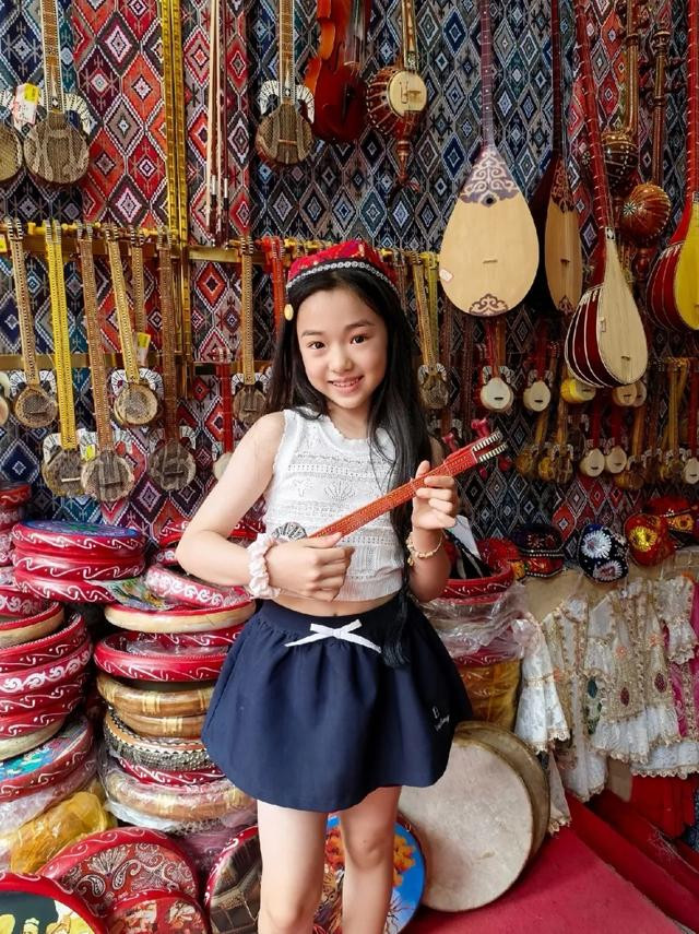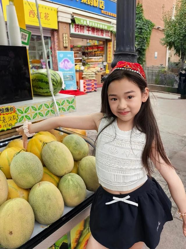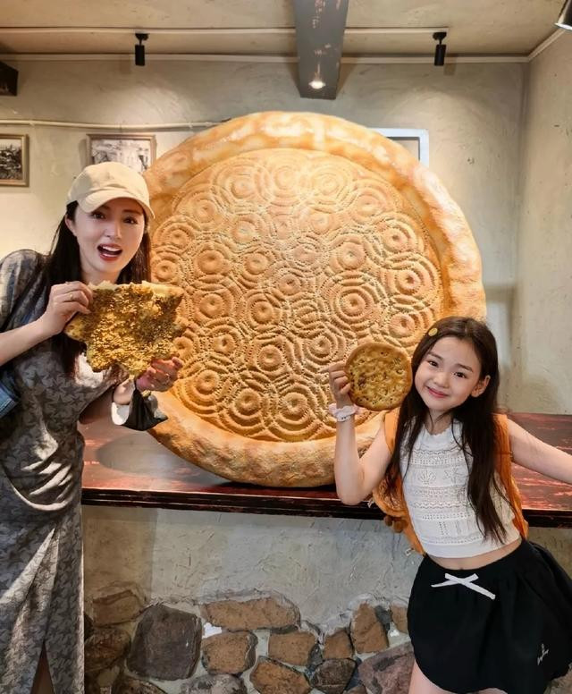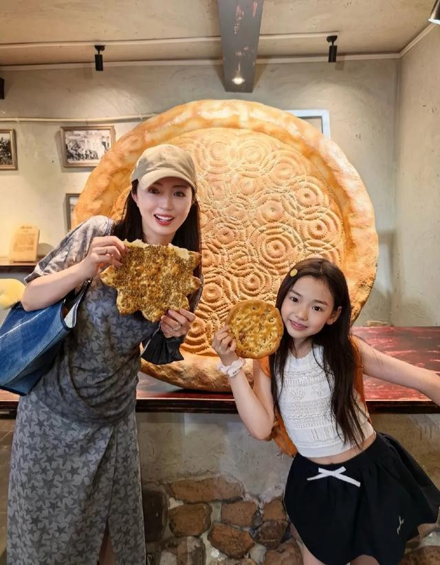 董璇和小酒窝去吃了新疆烤馕,小酒窝这打卡拍照姿势,真的明星范十足,比明星妈妈董璇还会摆造型。