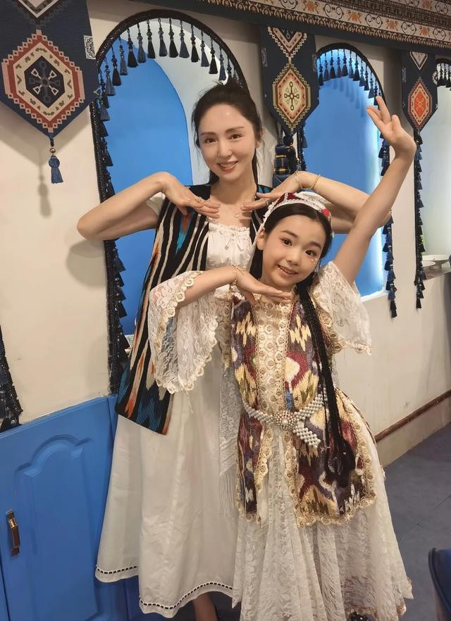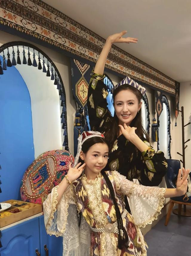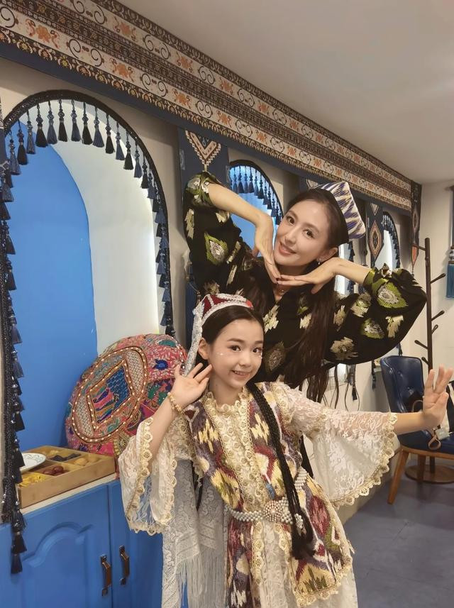 能歌善舞的佟丽娅和小酒窝穿着民族服饰一起跳舞,真的人比花美。