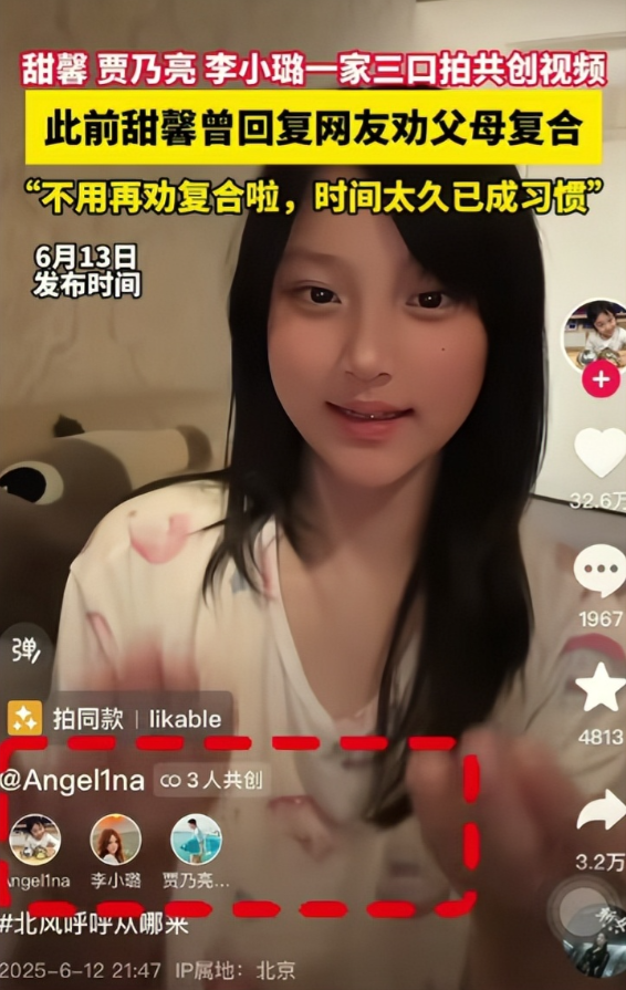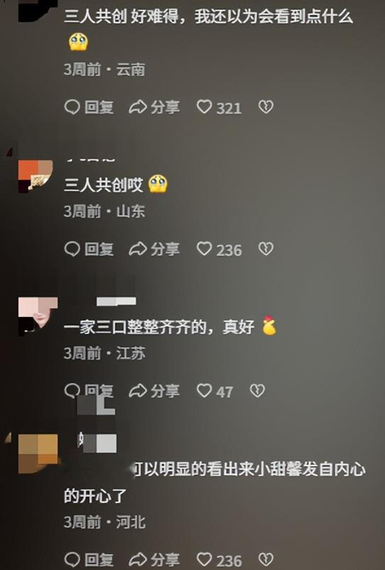 更关键的是,甜馨曾在个人社交账号发布了一条“三人共创”的视频,当时就引起不少网友的关注。