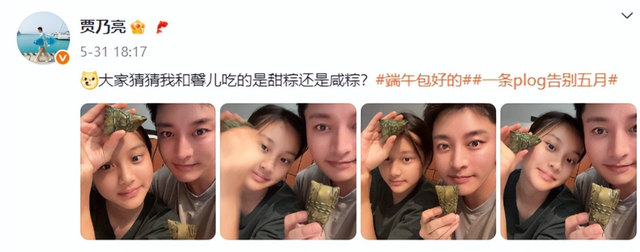 贾乃亮先是发了和女儿的合影,询问大家喜欢吃甜粽子还是咸粽子。