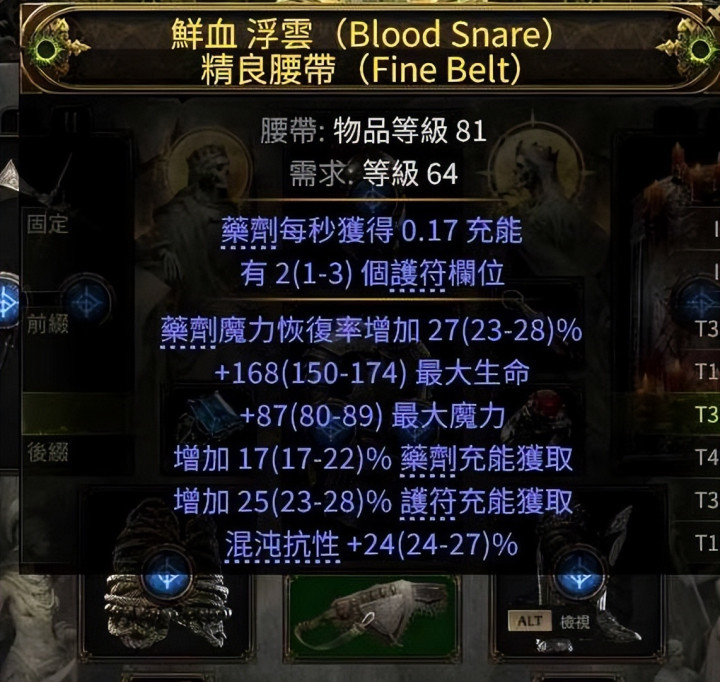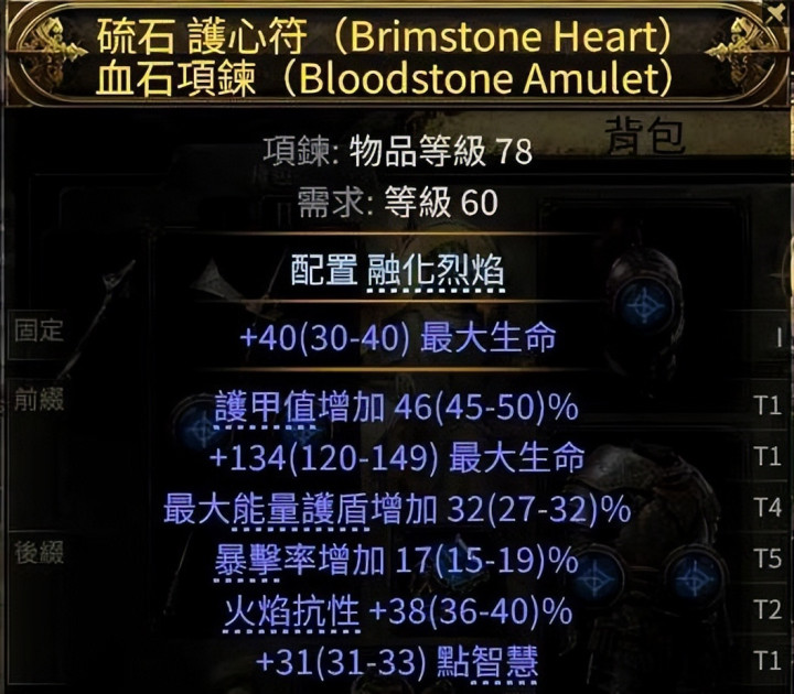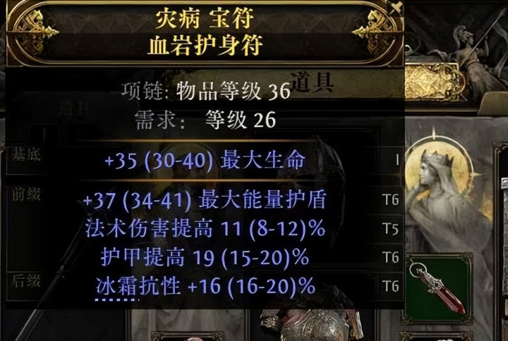 护符:当你的火冰电3抗不够75%的,就优先选择加元素抗性的护符,然后混沌抗性不满的也可以选择加混沌抗性护符,都满了可以选择,避免眩晕>避免冰冻>避免流血>避免缓速。