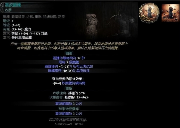 技能链接:轰动猛击-战争铁拳1-火焰协调;震地-火焰协调-战争铁拳1;震波图腾-冗余1-持续时间延长;炽热战吼-冷酷;灰烬之捷-范围扩大1