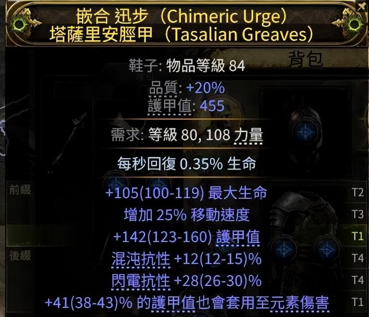 鞋子:生命>抗性>移动速度>百分比的护甲同样作用于元素伤害>力量=护甲