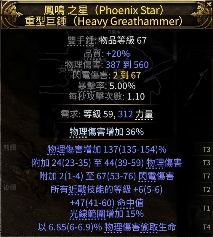 武器:前缀优先选择物理伤害提高>攻击附加XX-XX物理伤害>攻击附加XX-XX基础火焰伤害,后缀技能等级>攻速提升>眩晕积累=力量。