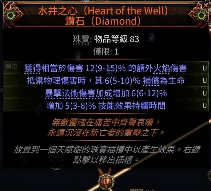 传奇珠宝选择水井之心,一定要有一条是获得额外火焰伤害的词缀
