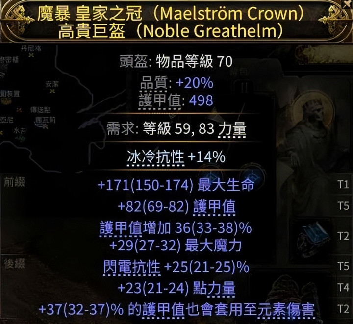 头盔:抗性>生命>百分比的护甲同样作用于元素伤害>力量=护甲
