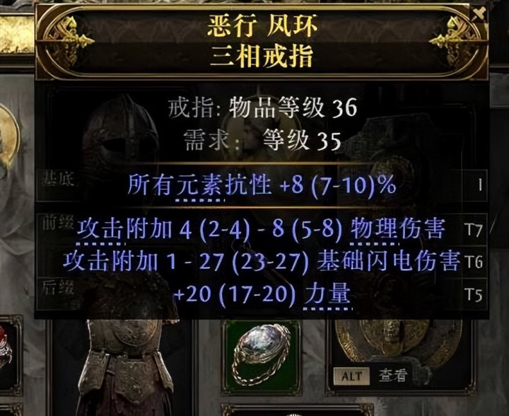 戒子:抗性>生命=力量>攻击附加物理伤害>攻击附加基础火焰伤害