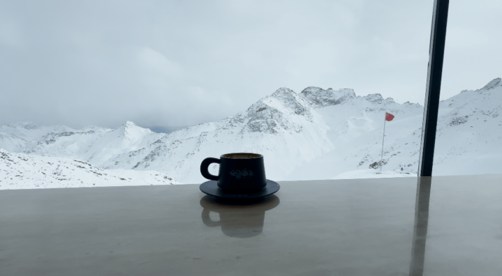 4860咖啡屋:点一杯拿铁,坐在窗边看雪花飘落,暖黄灯光映着纯白雪景,“冷与暖” 的碰撞治愈心灵,窗外的五星红旗打卡点在冰雪中留下一抹红。