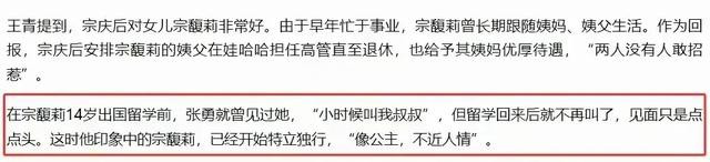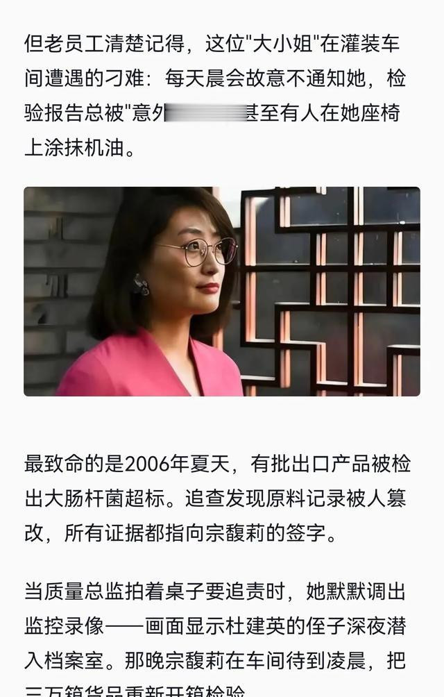 娃哈哈老员工说宗馥莉出国前,性格还是很开朗热情的,回国后变得沉默寡言。