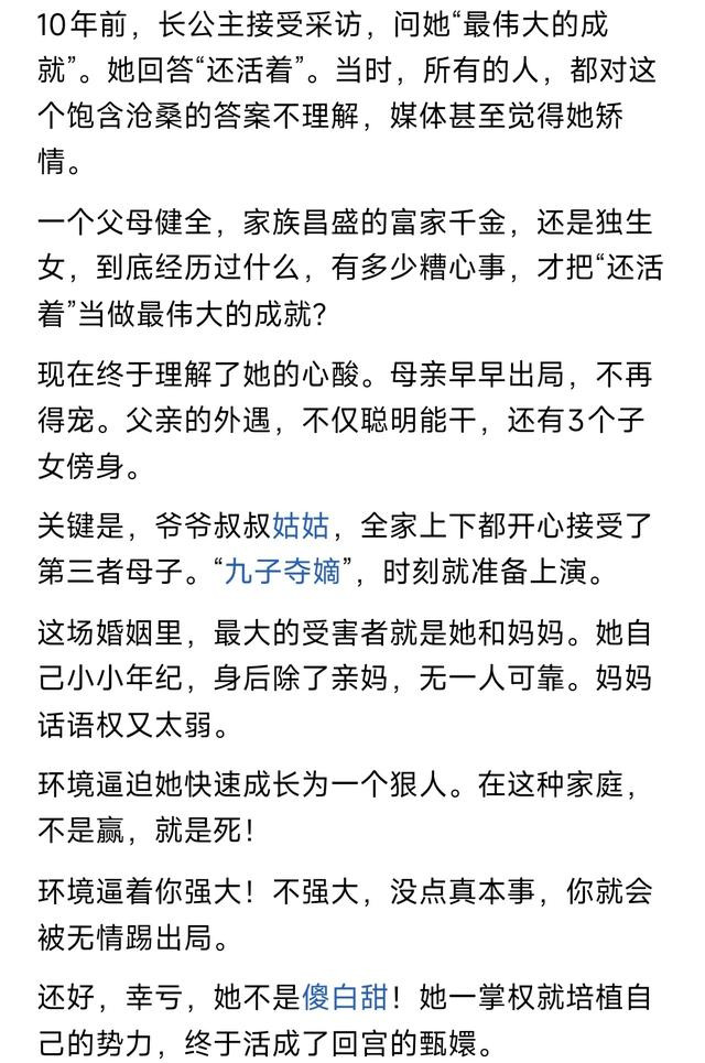 多年前宗馥莉采访被问到认为自己最大的成就是什么, 她说: 活着!