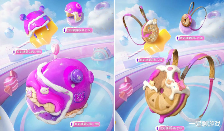 头盔、背包的表现较为一般,前者几乎毫无亮点,后者反倒是有点像是焦糖、巧克力的感觉,这种主题元素在游戏中也比较常见了。