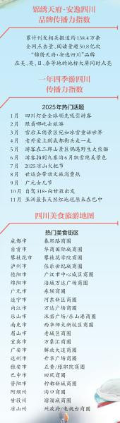◎美食已成四川文旅的网红代言,“为吃赴一座城”渐成风尚本报讯(四川日报全媒体记者张斌吴梦琳)12月8日,在2025四川省冬季旅游季启动仪式上,四川大学教授、博士生导师、世界研学旅游组织执行主席杨振之代表四川文化旅游宣传推广联盟,正式发布“锦绣天府·安逸四川”系列文旅指数,通过大数据深度解读四川文旅品牌发展、季节旅游热度与美食旅游消费的新趋势。这也是四川首次发布系列文旅指数。